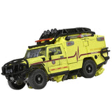 He can use hand accessories like his buzzsaw and hand gun weapon. This is a very articulated multi-step transforming toy. He turns into an H2 Hummer rescue vehicle.